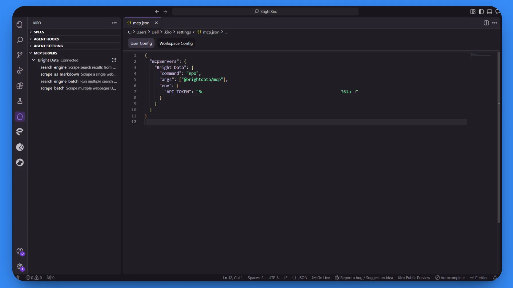 В этом разделе вы узнаете, как установить и настроить Kiro с Web MCP-сервером Bright Data. В результате вы получите среду разработки ИИ, способную получать доступ и обрабатывать веб-данные в режиме реального времени непосредственно в рамках рабочего процесса кодирования.