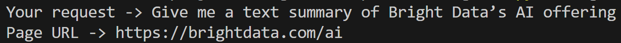 Теперь предположим, что вам нужно обобщить содержимое центра услуг искусственного интеллекта Bright Data. Просто введите такой запрос: